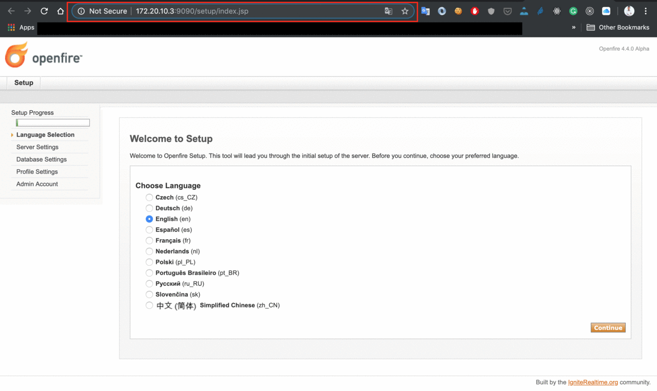 After running Openfire you can go to your server using the URL shown in console (or http://localhost:9090) and configure it.